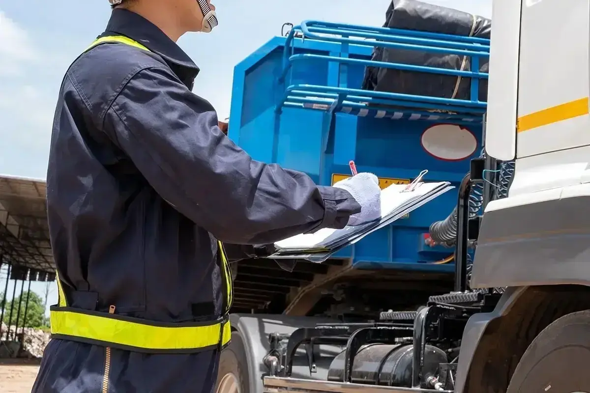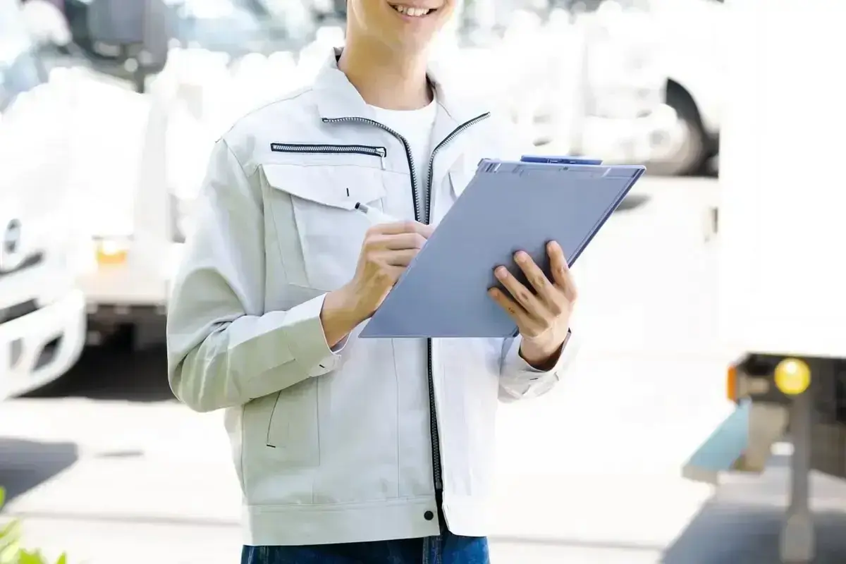 ・トラックの車両点検を行い、問題がないか確認